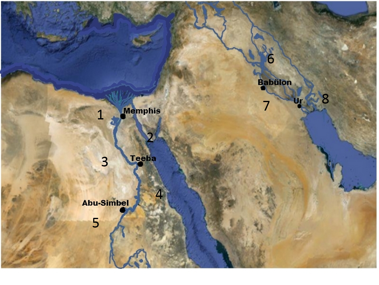 Mesopotaamia ja Egiptus. Geograafilised paigad kaardil